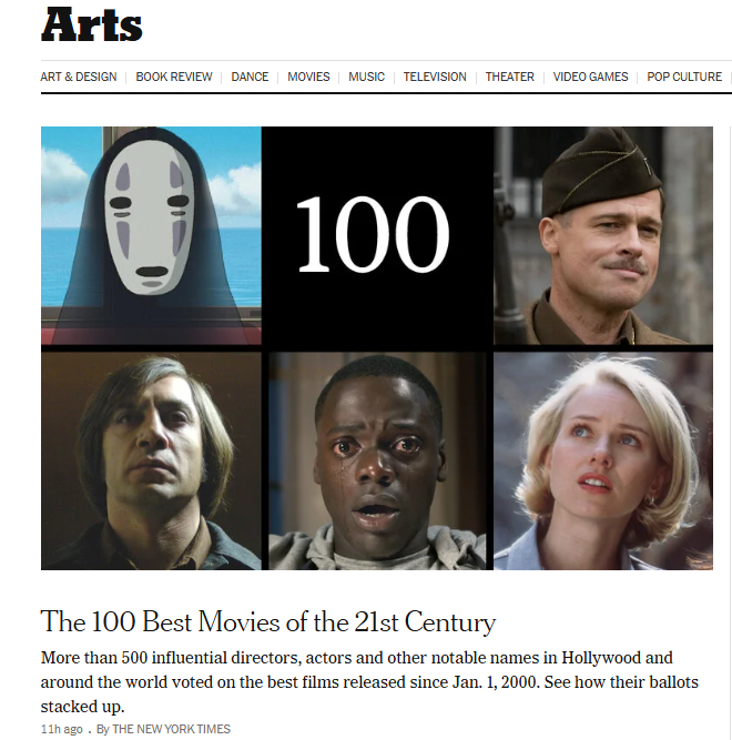 최근 뉴욕타임즈가 발표한 ‘21세기 최고의 영화 100편’ 순위에서, 한국 영화는 3편이 이름을 올렸습니다: