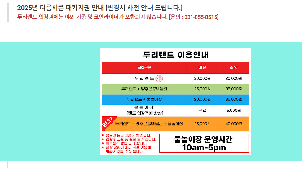 3️⃣ 두리랜드 입장료 및 운영 정보