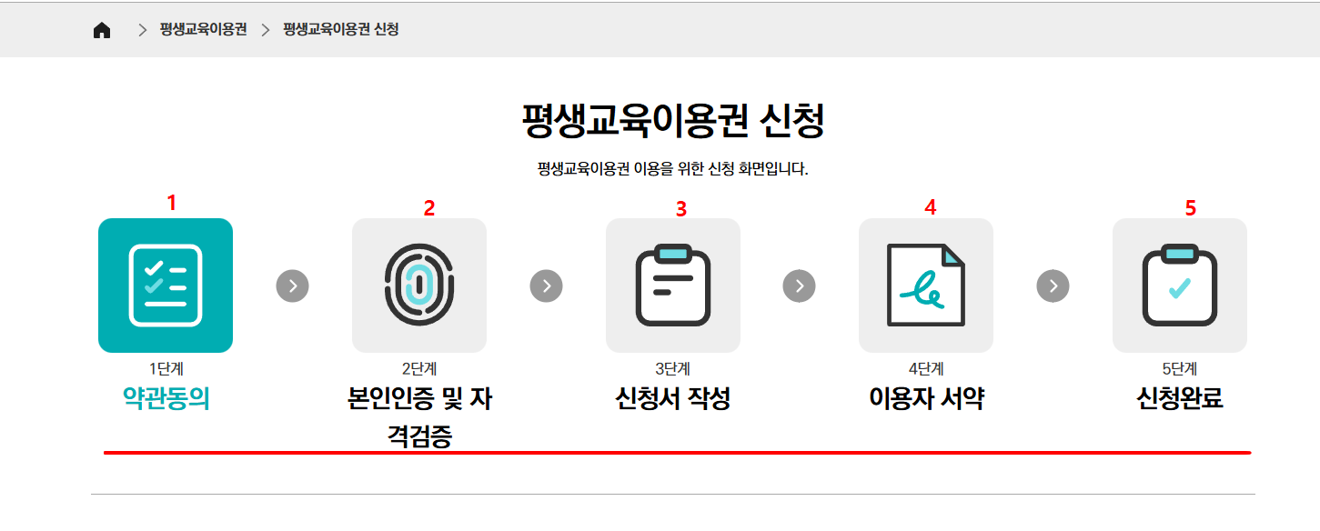 - 신청→선정→카드 충전→수강신청→강의 수강 순서로 진행됩니다